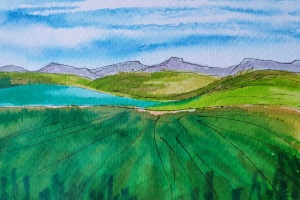 During 2020, Effie was laid low with Covid 19 which became Long Covid. A year later in 2021 she still had little energy for quilt making. However she found her way to watercolours and started painting at a small size. In this gallery you will find her Postcard Paintings which all reflect her memories of the Western Isles. The paintings are drawn from sketches, memories and photographs.