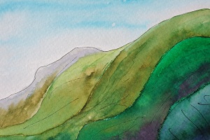 During 2020, Effie was laid low with Covid 19 which became Long Covid. A year later in 2021 she still had little energy for quilt making. However she found her way to watercolours and started painting at a small size. In this gallery you will find her Postcard Paintings which all reflect her memories of the Western Isles. The paintings are drawn from sketches, memories and photographs.