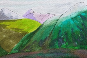 During 2020, Effie was laid low with Covid 19 which became Long Covid. A year later in 2021 she still had little energy for quilt making. However she found her way to watercolours and started painting at a small size. In this gallery you will find her Postcard Paintings which all reflect her memories of the Western Isles. The paintings are drawn from sketches, memories and photographs.