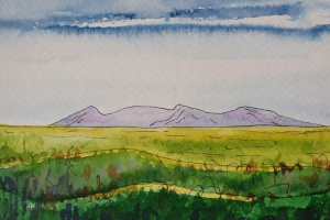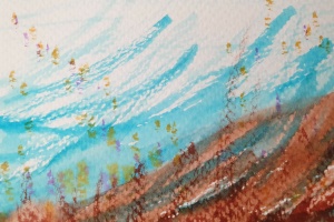 During 2020, Effie was laid low with Covid 19 which became Long Covid. A year later in 2021 she still had little energy for quilt making. However she found her way to watercolours and started painting at a small size. In this gallery you will find her Postcard Paintings which all reflect her memories of the Western Isles. The paintings are drawn from sketches, memories and photographs.